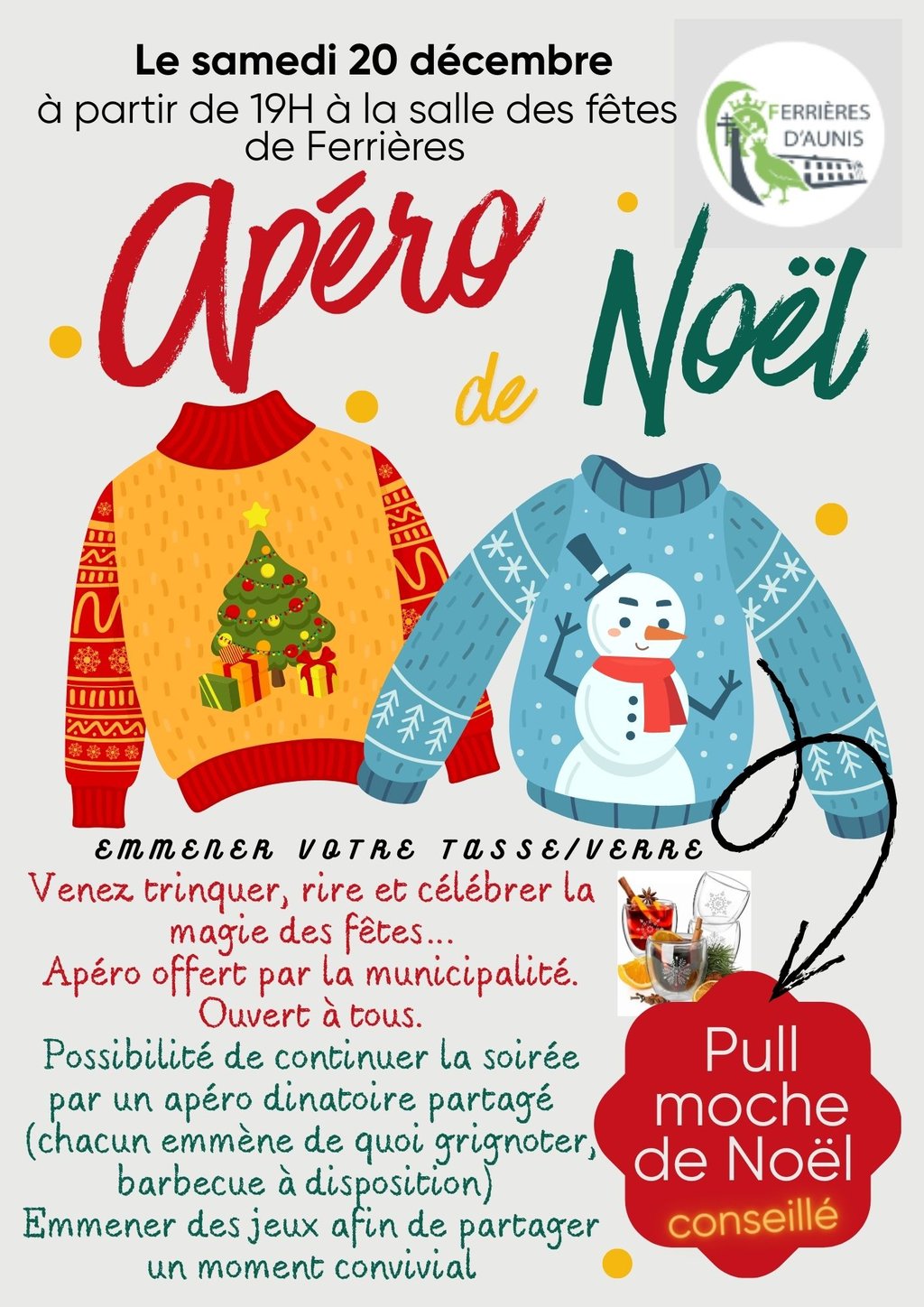 Venez partager un moment de convivialité autour d'un verre offert par la municipalité (emmener votre verre)