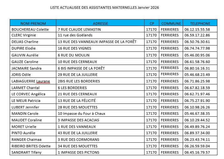 La MAM « A PetitsPas » de Ferrières située au 5 rue de la forge a ouvert ses portes le 2 octobre 2017, avec 3 Assistantes Maternelles agréées par le conseil général.